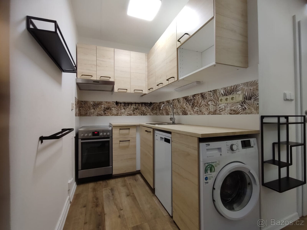 Tento moderně zrekonstruovaný byt má dva samostatné pokoje - z obýváku se vchází na zasklenou lodžii. V kuchyňském koutě, který navazuje na předsíň, je instalována nová kuchyňská linka se sporákem, myčkou, digestoří a s pračkou. V koupelna najdete sprchový kout s masážním panelem a WC. K bytu náleží sklepní koje. Parkovat lze před domem.
