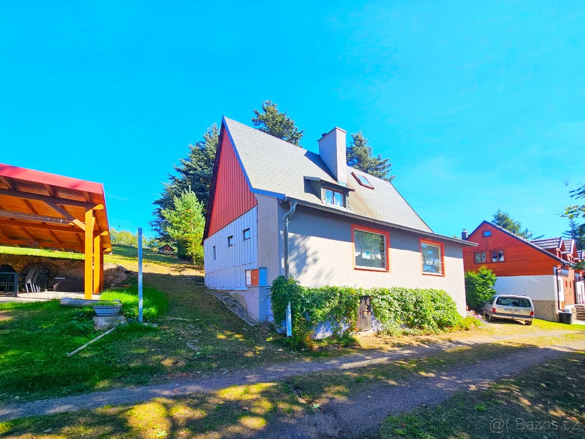 Krásné výhledy do okolní krajiny, klid a možnost zrekonstruovat rekreační chatu na celoroční bydlení. Na pozemku o rozloze 1347 m se zastavěnou plochou 80m se nachází zděná chata o dispozici 3+kk, s evidenčním číslem, o 2 nadzemních podlažích a s drobnějším balkonem jako takovým menším bonusem. Do chaty je přivedena elektřina a užitková voda, tudíž by bylo vhodné nechat si zhotovit vlastní studnu s pitnou vodou, jako to mají sousedé z okolních chat. Odpad je svedený do žumpy. Chata je určena ke kompletní rekonstrukci, aby Vám mohla sloužit k celoročnímu užívání tak jako slouží mnoha sousedům v okolí. Rozsah rekonstrukce bude ale samozřejmě záležet na Vašich potřebách a hlavně finančních možnostech. Když se chatu rozhodnete rekonstruovat, tak Vás bude jistě zajímat, že se konstrukčně jedná o zděnou stavbu s jednou větší místností spojenou s kuchyní ve spodním patře, WC, koupelnou a malou kotelnou. Ve druhém patře se nacházejí dvě propojené místnosti. Má dřevěná okna, není zateplená a po úpravách může dál sloužit jako rekreační objekt. To je ale svým způsobem škoda s ohledem na její potenciál. Pozemek za chatou je mírně svažitý, s množstvím okrasných stromů a keřů. Co se týče přístupové cesty a parkování možností je několik. Buď na obecním pozemku kousek od hranice parcely, nebo přímo na vlastním pozemku. Navíc vzhledem ke sklonu příjezdové cesty musíte počítat s možnými komplikacemi (zejména pokud by napadlo větší množství sněhu). Zahrada je díky svému tvaru působivě rozlehlá. Vstup na pozemek by byl možný z obou jeho konců. Pokud máte pocit, že byste si s touto příležitostí poradili, tak mi napište nebo zavolejte a domluvíme si termín prohlídky, na které se na Vás budu těšit.