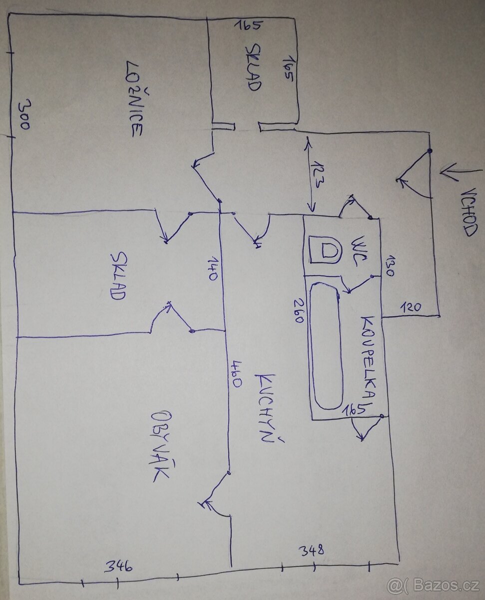 Pokoje oddělené, s průchodem mezi sebou, z chodby a z kuchyně.