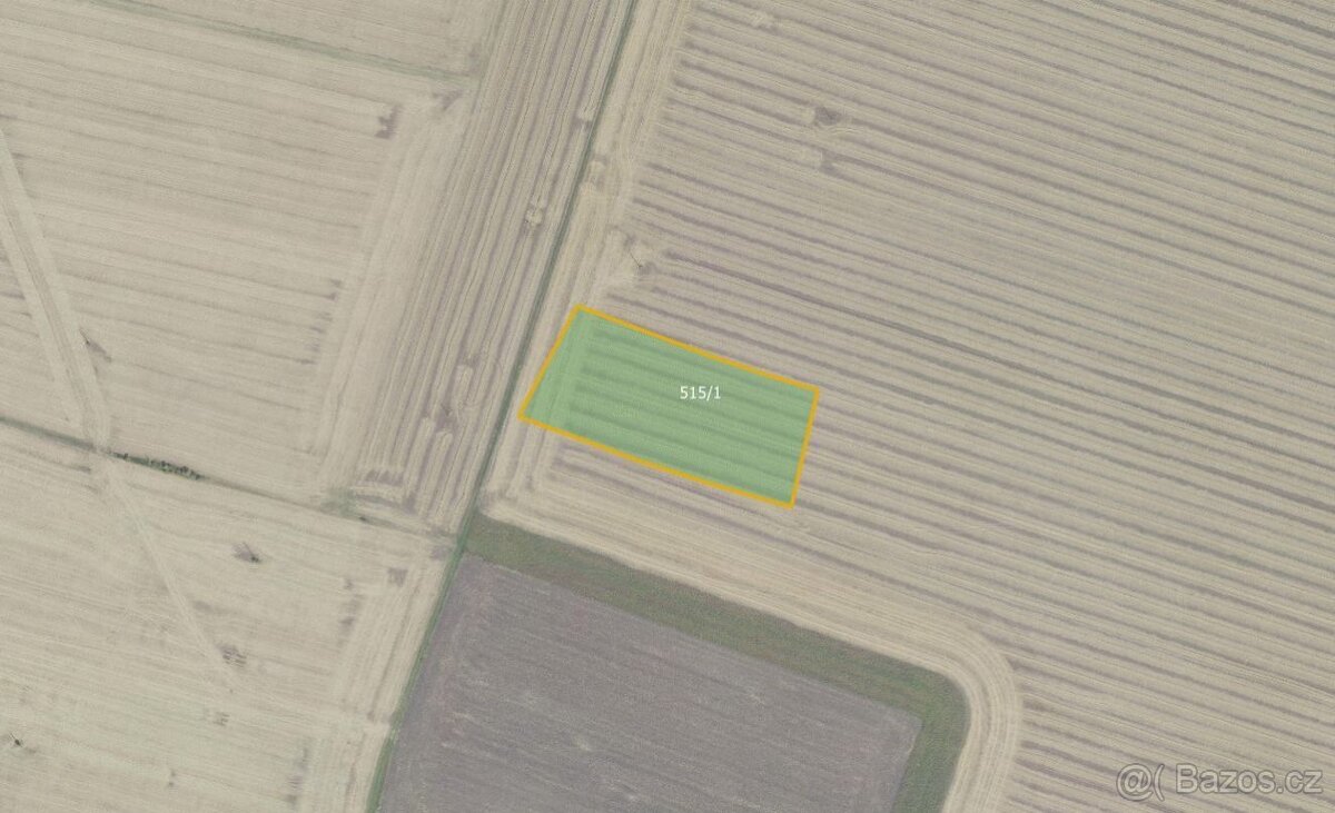 Parcela č. 515/1 o celkové výměře 7 672 m je zapsána na LV č. 164. Prodávající nabízí vlastnictví výměry 7 161 m. Pozemek je veden jako orná půda. Přístupný je po ostatní komunikaci.