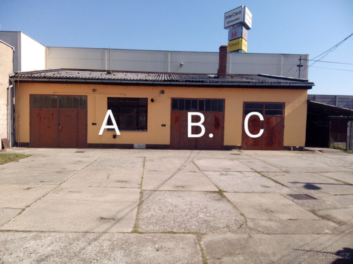 Pronájem skladu nebo garáže ve fotografii označené písmenem B.
