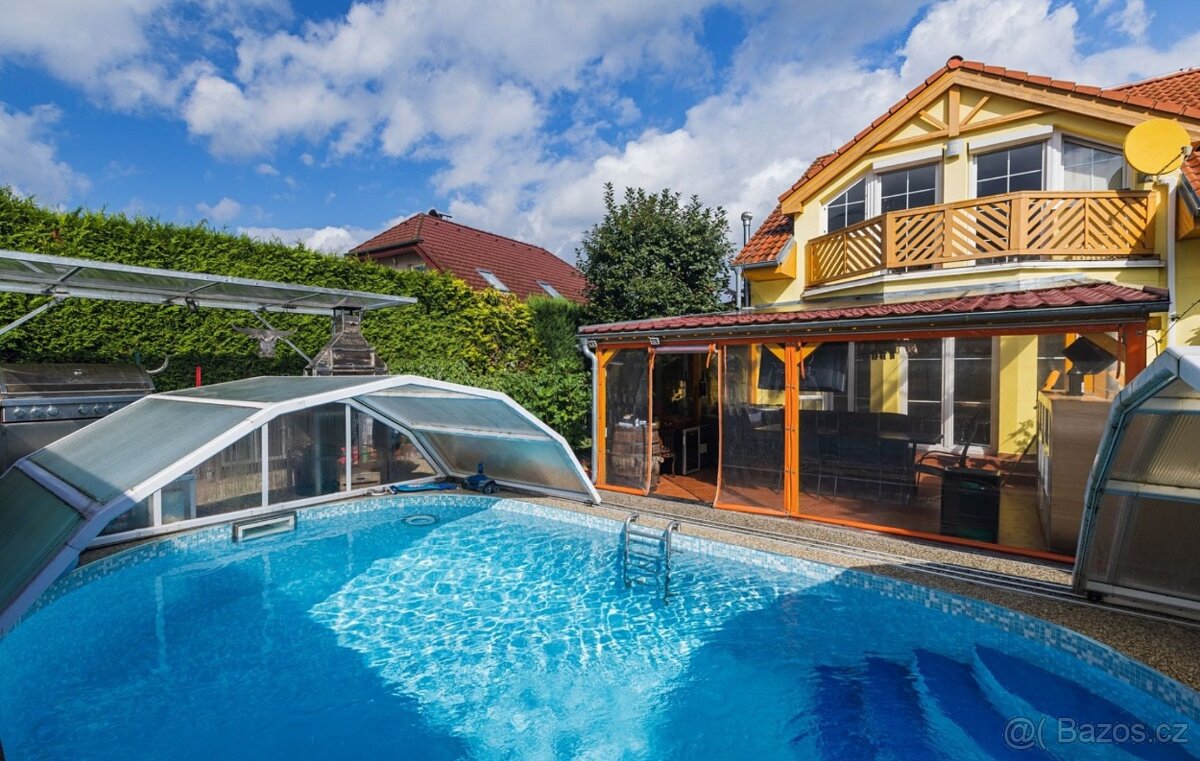 - bazén s automatickým dávkovačem, 2x tepelnými čerpadly pro ohřev vody až na 35 stupňů i v zimě