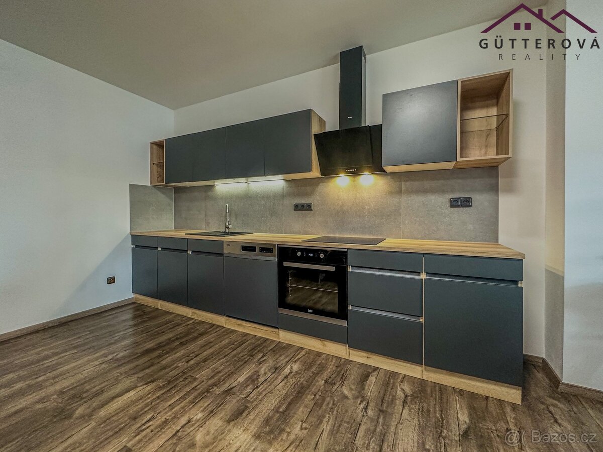 Byt tvoří zádveří, samostatné WC, koupelna se sprchovým koutem, velkorysý obývací pokoj s moderní kuchyňskou linkou se spotřebiči (myčka, indukce, trouba, lednice) a ložnice. Nábytek není součástí pronájmu.