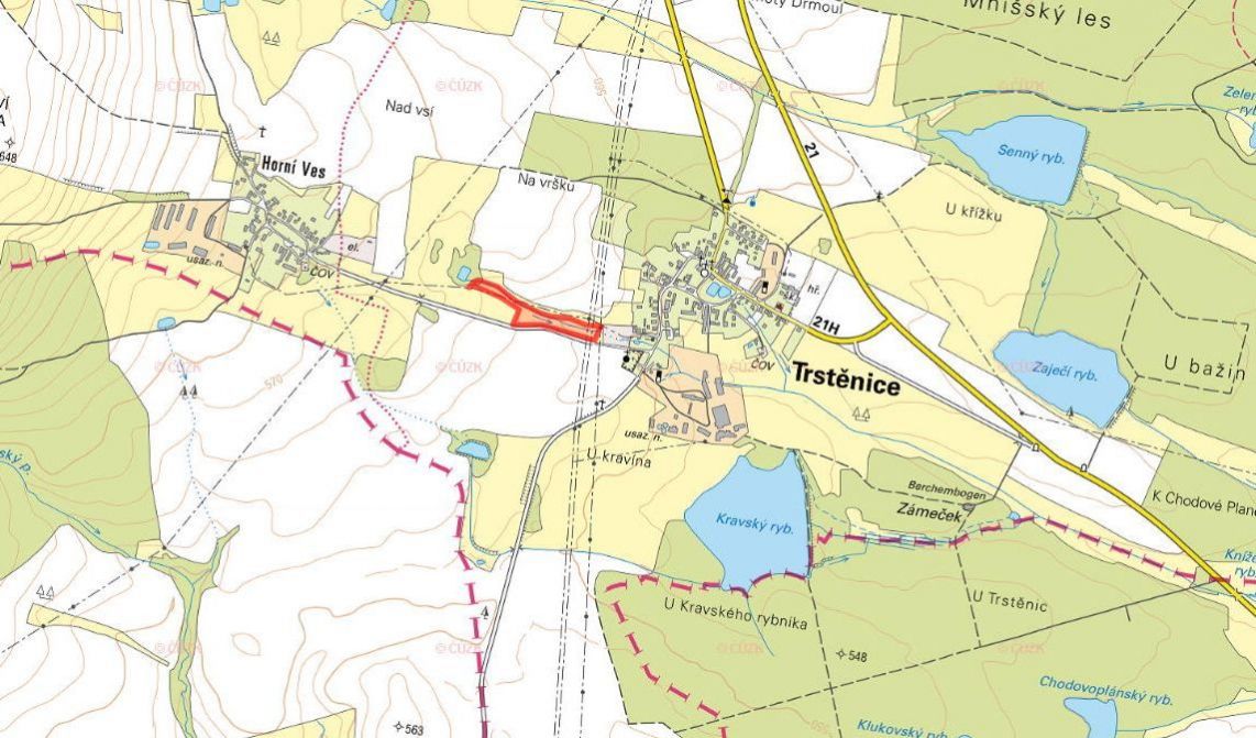 Parcela leží v katastrálním území Trstěnice u Mariánských Lázní. Zapsána je na listu vlastnictví 351 pod číslem 562/1. Užívána je jako trvalý travní porost. Leží podélně u zpevněné komunikace v blízkosti zastavěného území obce.