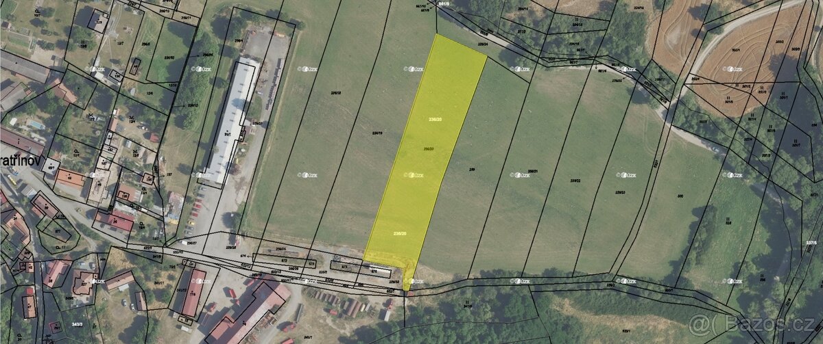 Pozemky patří pod LV: 409, parcelní číslo: 236/20, 352/1, 343/2, 343/1, 343/3.