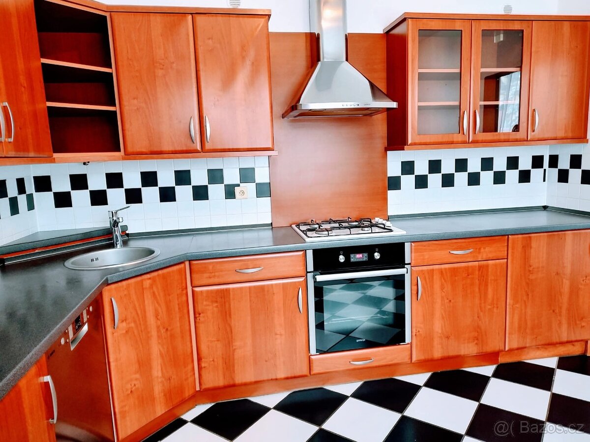 Byt o podlahové ploše 84 m² se nachází v 1. patře panelového domu a je velmi světlý díky své orientaci. Dispozice zahrnuje dvě neprůchozí ložnice, prostorný obývací pokoj se vstupem na balkón (orientace jihozápad) a samostatnou kuchyni. Kuchyňská linka je vybavena myčkou, kombinovaným sporákem, troubou a lednicí s mrazákem.